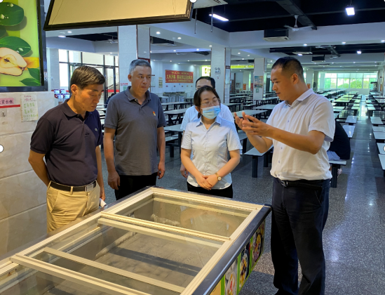 5月25日上午,我校开展食品卫生安全工作专项检查,校领导游小波、李旭、周勇军,校党政办、后勤管理处等相关职能部门负责人组成检查组,对学校康美校区食堂食品卫生安全情况进行大排查大整治。