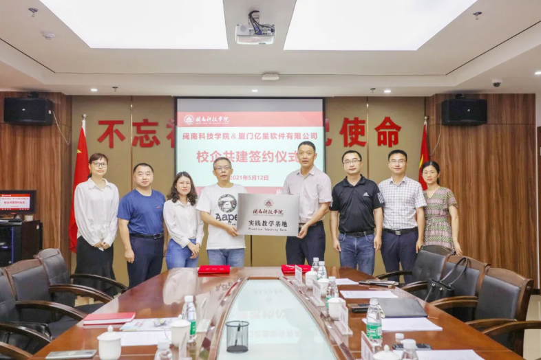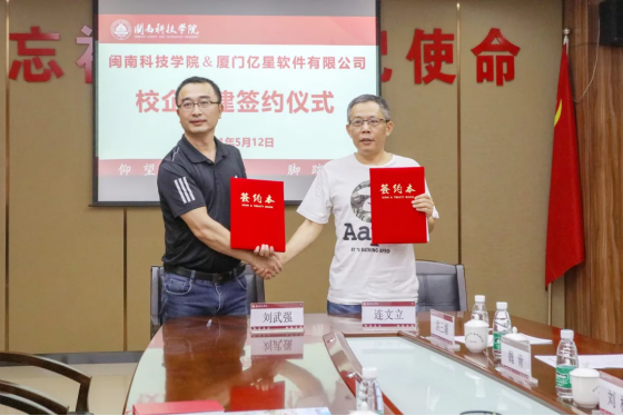 5月12日下午,我校与厦门亿星软件有限公司举行校企共建签约仪式。亿星软件公司总经理连文立,学校副校长吴勇,教务处、商学院负责人及相关教师等出席签约仪式。