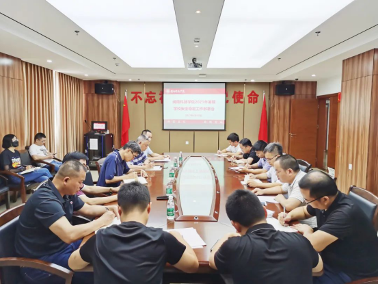 6月30日下午,我校召开暑期安全稳定工作部署会,校领导游小波、李旭、周勇军、林树生、邱永渠,学校安全稳定工作领导小组全体成员参加会议,会议由常务副校长周勇军主持。