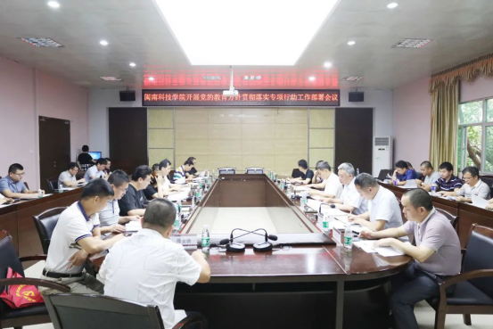 6月23日上午,我校在图书馆二楼会议室召开党的教育方针贯彻落实专项行动工作部署会。校领导游小波、李旭、周勇军、林树生,全体中层干部参加会议。部署会由校党委书记李旭主持。