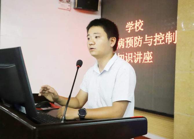 林智勇从传染病基本知识、学校传染病的特点、学校常见传染病、学校传染病的预防与控制等四个方面进行讲解,全面介绍常见传染病“流行性感冒”“水痘”“肺结核”“诺如病毒感染性腹泻”的初期症状及预防措施,并以诺如病毒感染性腹泻为例,从思想认识、制度保障、措施落实等方面提出预防意见建议。