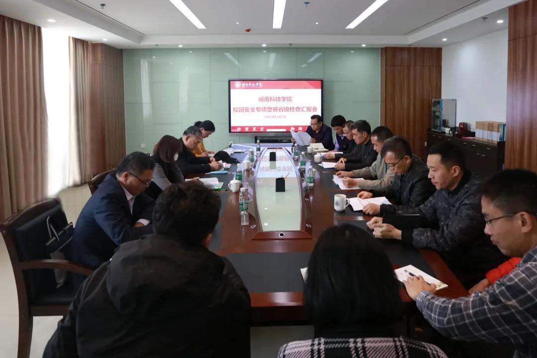 12月8日下午,校园安全专项整顿省级检查组高校三组组长林鲁文一行莅临我校调研检查校园安全专项整顿工作开展情况,校领导游小波、周勇军、林树生,各相关职能部门负责人参加汇报会。