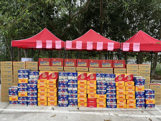 3月24日,我校2008届国际经济与贸易专业优秀校友杨成滨向母校捐赠了一批生活物资,包括方便面120箱、八宝粥60箱、花生牛奶60箱,用于慰问抗疫一线志愿者和家庭经济困难学生。