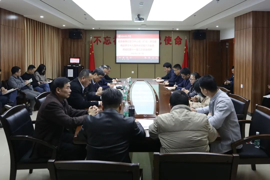 3月7日下午,我校召开党委理论学习中心组(扩大)学习会,传达学习十九届中央纪委六次全会和省纪委十一届二次全会精神,研究学校贯彻落实意见。校党委领导班子成员,纪委委员,机关职能部门负责人,二级学院党总支负责人、直属党支部书记参加了学习会。学习会由校党委书记李旭主持。