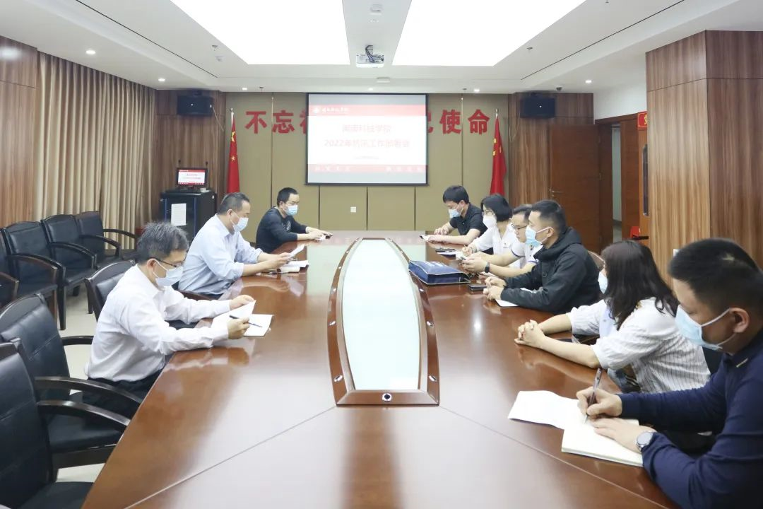 5月12日,我校召开2022年防汛工作部署会。常务副校长周勇军,党政办、宣传部、保卫处、后勤处、学工处、人事处、董事会办公室、物业公司等相关职能部门负责人参加会议。