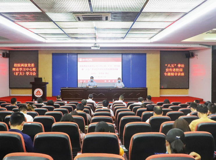 5月23日下午,我校举行校院两级党委理论学习中心组(扩大)学习会暨“八五”普法宣传进校园专题辅导报告。司法部涉外法律服务“千名人才”、省司法厅行政立法咨询顾问专家、泉州市人民政府法律顾问李色阳博士应邀作题为《民办高校工作人员职务涉法刑事合规态势与实务分析》辅导报告。校领导游小波、李旭、周勇军、林树生、邱永渠,校、院全体行政管理干部、辅导员参加学习。报告会由校党委书记李旭主持。