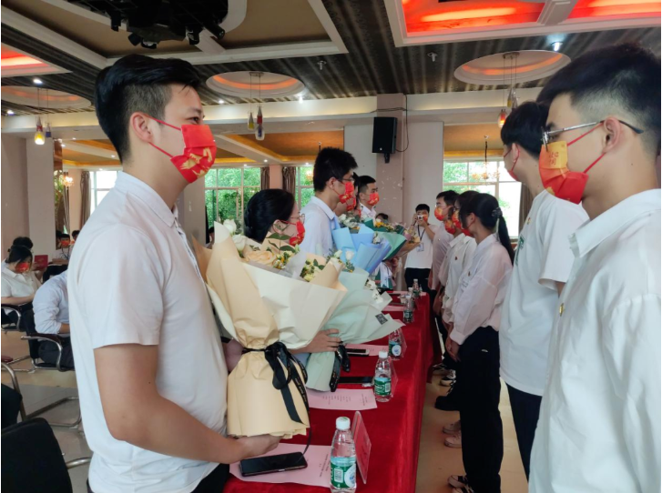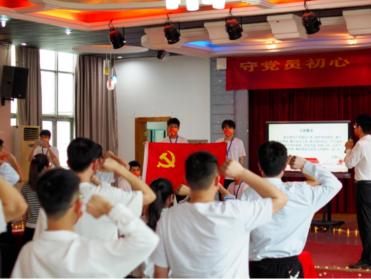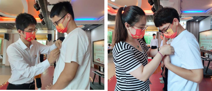 重温一遍入党誓词。党总支书记李毅任和毕业班支部书记黄玉玲为毕业生党员们佩戴党员徽章,毕业班党员同志为新进党员佩戴党员徽章,之后,党总支书记李毅任领誓,全体毕业生党员面对党旗宣誓,重温入党誓词。教育应道毕业生党员不忘身为共产党员的职责,永葆共产党人的政治底色。