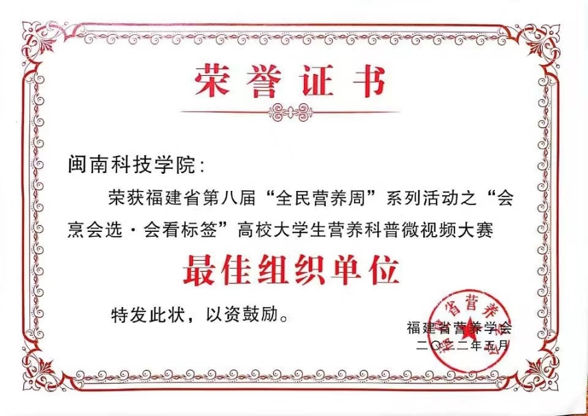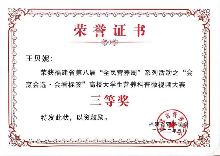 我校学子在第八届“全民营养周”之“会烹会选·会看标签”福建省高校大学生营养科普微视频大赛中喜获佳绩