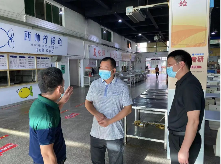 校领导一行实地检查了两个校区的校园环境、教学场所与设施、实验室、食堂、学生宿舍、超市、体育运动场所等地,深入了解疫情防控、校园环境、安全生产和秋季学期教学安排及开学相关工作情况,并针对发现的问题提出指导意见。