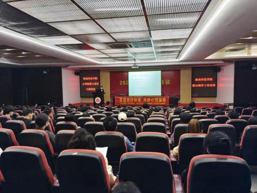 10月12日下午,我校联合南安市卫健局、市疾控中心、市康复院、康美卫生院举办“营造良好环境 共助心理健康”为主题的健康知识专题讲座,共90多位学生代表参加。讲座由南安市康复院陈宛莹心理咨询师主讲。