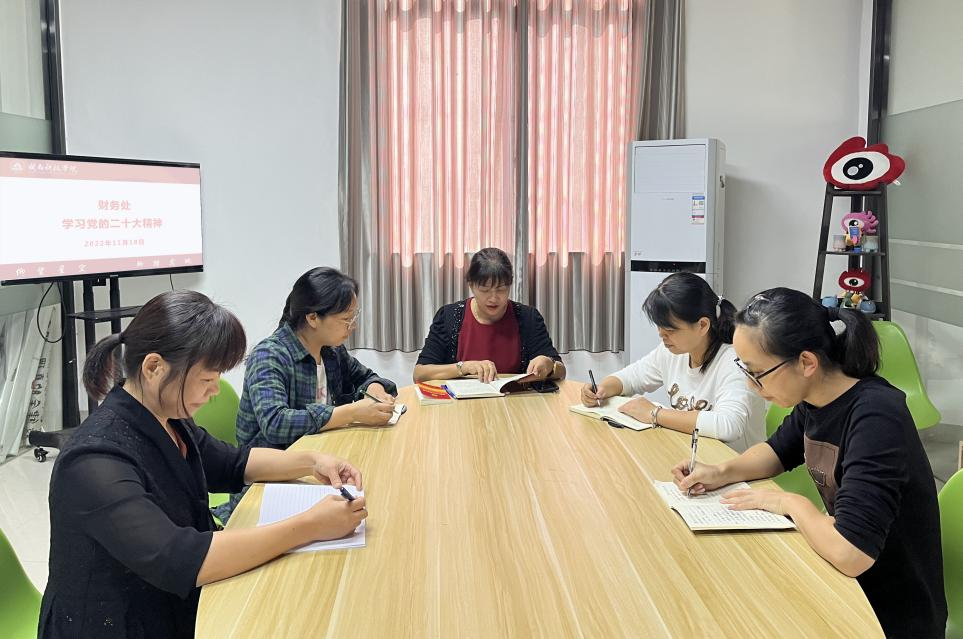 11月18日下午,财务处召开学习贯彻党的二十大精神专题会议。会上,财务处处长周亦珠带领全体人员学习党的二十大精神,强调要把学习贯彻好党的二十大精神作为当前和今后一个时期的重大政治任务,进一步学深、悟透,与财务工作实际结合起来,与持续做好财务处年度重点工作相结合,把职责摆进去、把工作摆进去,不断增强思想自觉、政治自觉、行动自觉,真正地将党的二十大精神落实到具体工作中去,不断提升财务管理水平和服务质量。