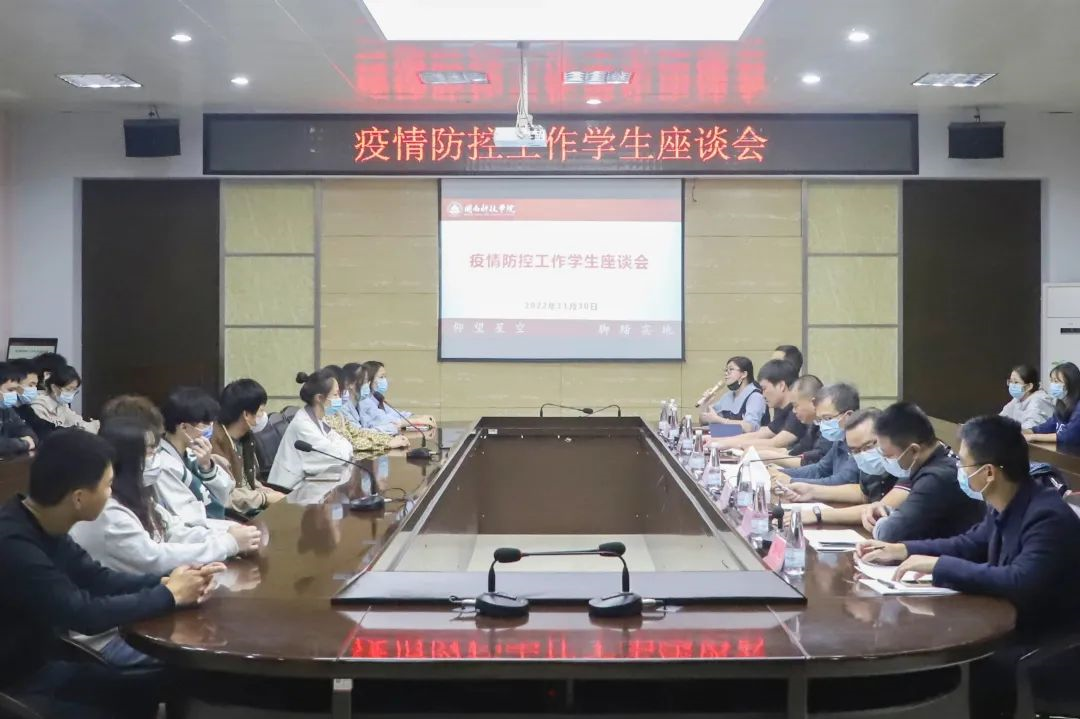 座谈会于11月30日和12月1日分别在康美校区、美林校区召开,校党委副书记林树生,校防控办、学工处、保卫处、后勤处、教务处、校团委等职能部门负责人,以及各学院年级学生代表参加座谈。