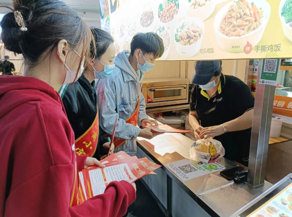商小宝大学生理论宣讲小分队深入学生宿舍、食堂,分发党的二十大精神宣传单,用通俗易懂的语言、灵活多样的形式,开展宣讲活动。