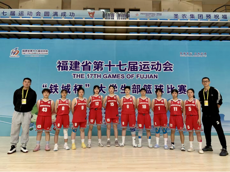 11月27日至12月1日,篮球(大学生部)比赛八强排位赛在南平市邵武市体育中心赛场举行。此前,篮球甲A(本科组)女子组预赛有17支参赛队,参赛人数多,竞争异常激烈。我校女篮以小组第二的成绩顺利进入8强决赛圈,在教练员戴越强的带领下,发挥敢打敢拼的精神,不畏强手,赛出水平,最终斩获第七名,创造我校篮球成绩的历史新高。