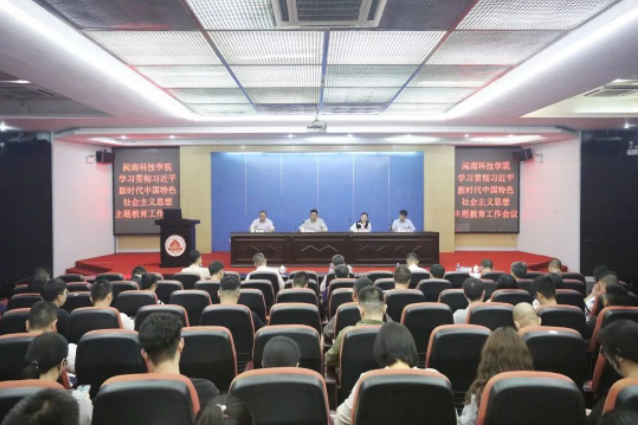 4月19日下午,我校召开学习贯彻习近平新时代中国特色社会主义思想主题教育工作会议。省委教育工委、省教育厅主题教育协调推进五组成员林静、曾逸群莅会指导。校领导班子成员、校主题教育领导小组成员、机关全体中层干部,各二级学院党政主要负责人、组织员、党支部书记、辅导员参加会议。会议由校党委副书记林树生主持。