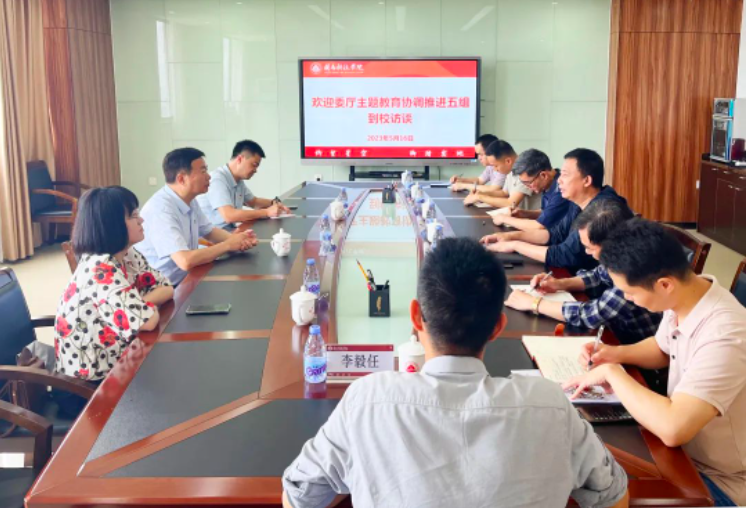 5月16日上午,省委教育工委、省教育厅主题教育协调推进五组组长林其天,组员曾逸群、尤寅灵莅临我校,对我校主题教育的实施情况及“我为师生办实事”项目开展访谈指导。校领导游小波、李旭、邱永渠、王育海,组织部、宣传部、校工会负责人参加会议。