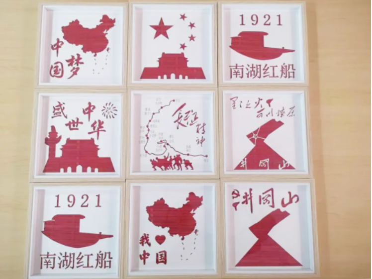 在“青春向党,不负韶华”爱国主题竹编画制作活动中,毕业班党员将想象力和创造力融入竹编画作品中,表达对党和祖国的无限热爱。