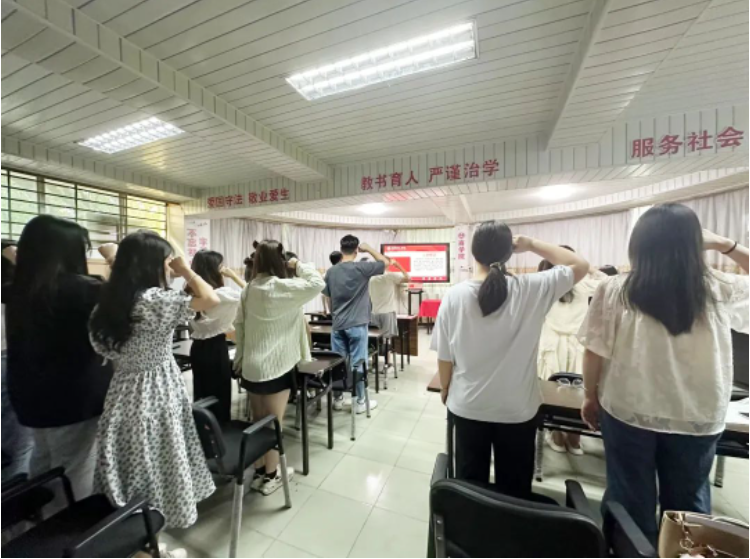 学院2023届全体毕业生党员通过重温入党誓词,提醒自身牢记对党的庄严承诺,以实际行动践行入党誓词。