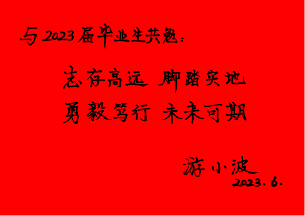 校长游小波为2023届毕业生寄语题词