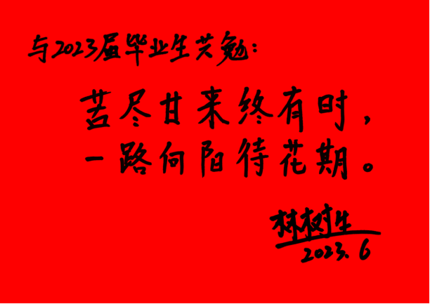 校党委副书记林树生为2023届毕业生寄语题词