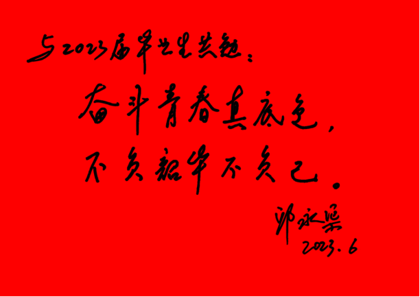 副校长邱永渠为2023届毕业生寄语题词