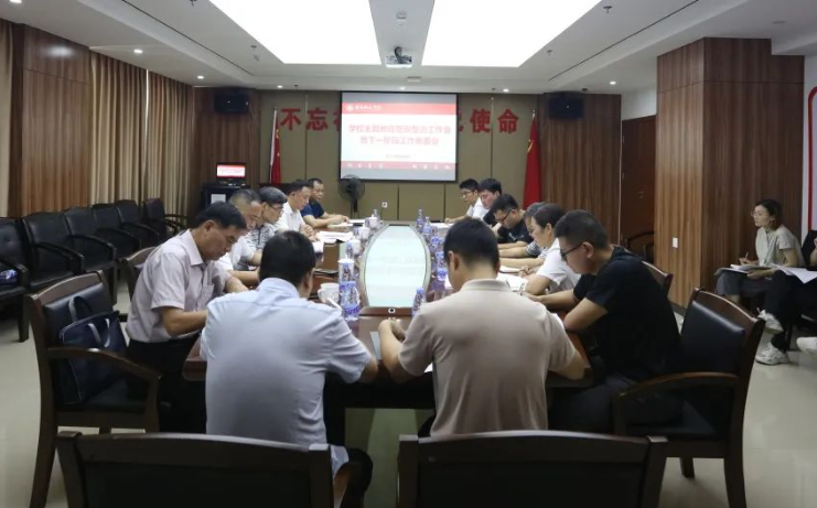8月9日,我校召开主题教育整改整治工作会暨下一阶段工作部署会,深入学习贯彻习近平总书记重要讲话重要指示批示精神,贯彻落实委厅主题教育整改整治工作会议精神,总结近段时间学校主题教育成效,分析存在的问题,部署下一阶段工作。党员校领导,校党委委员、纪委委员,主题教育工作领导小组成员,二级单位党组织负责人参加会议。会议由校党委书记李旭主持。