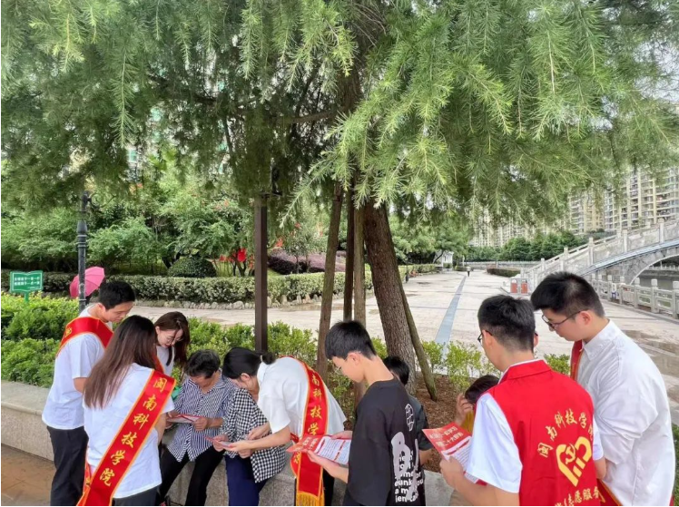 实践队深入开展“进学校、进社区、进企业、进街道、进机关”的学习活动,成员们分发关于党的二十大的精神的宣传单,并以浅显易懂的方式讲解党的二十大报告内容,与居民一起畅谈新时代身边喜人变化的过程中,实践队成员用乡村“小变化”展示国家“大发展”,积极引导广大人民群众为国家的繁荣富强做出贡献。