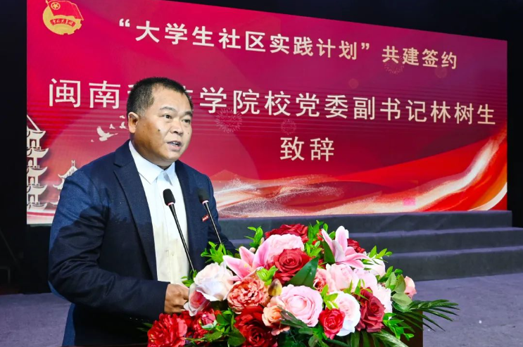 校党委副书记林树生代表学校致辞。他指出,近年来我校深入贯彻落实习近平总书记关于青年工作的重要思想,团结带领广大青年建功新时代,奋进新征程,在学校持续实施“共青团促进大学生就业行动”之际,推动校地团组织结对共建,恰逢其时、意义深远。回顾过去一年,在地方党委政府和社会各界的关心支持下,我校积极组织广大团员青年开展各项实践活动,并取得了丰硕的成果。他强调,校地双方要在组织化、长效化上持续发力,在品牌化、精细化上持续发力,在机制化、专业化上持续发力,努力在服务社会的大舞台中,展现新作为、作出新贡献、取得新发展。