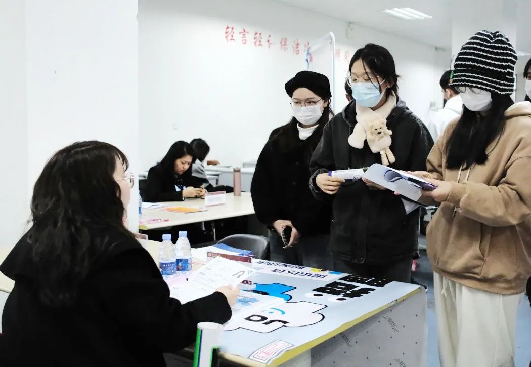 此次专场招聘会共有26家优质企业,提供文化传媒、平面设计、新媒体运营、品牌营销等专业契合岗位239个。招聘会现场井然有序,毕业生们积极主动地与用人单位进行交流,了解企业的工作职责、福利等内容。用人单位的工作人员也热情并耐心地回应前来了解咨询和面试的同学们,和他们进行详细地介绍说明情况。