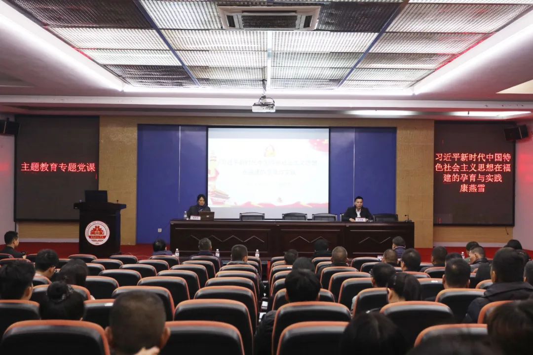12月21日,我校与南安康美镇开展党委理论学习中心组联学活动,通过举办专家辅导报告,深入学习贯彻习近平新时代中国特色社会主义思想,持续巩固和拓展主题教育成果。校领导李旭、周勇军、林树生、邱永渠,校地双方党委理论学习中心组成员、党员代表、师生代表参加学习活动。报告会由康美镇党委副书记、园内村党支部第一书记张育楠主持。