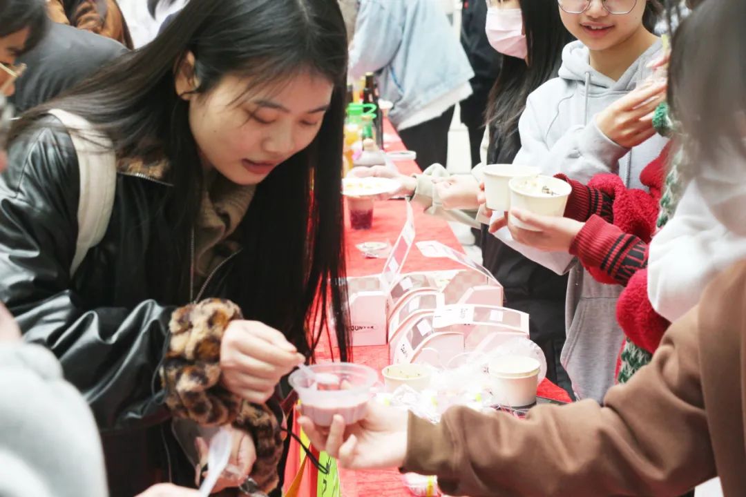12月20日下午,我校生命科学与化学学院开展食品工艺实训成果展示活动。流心麸皮小蛋糕、薯泥板栗牛乳、紫薯牛奶布丁、鸡胸肉球紫薯、芝芝银呷香肠……30余款自制特色美食,吸引广大师生驻足品鉴。