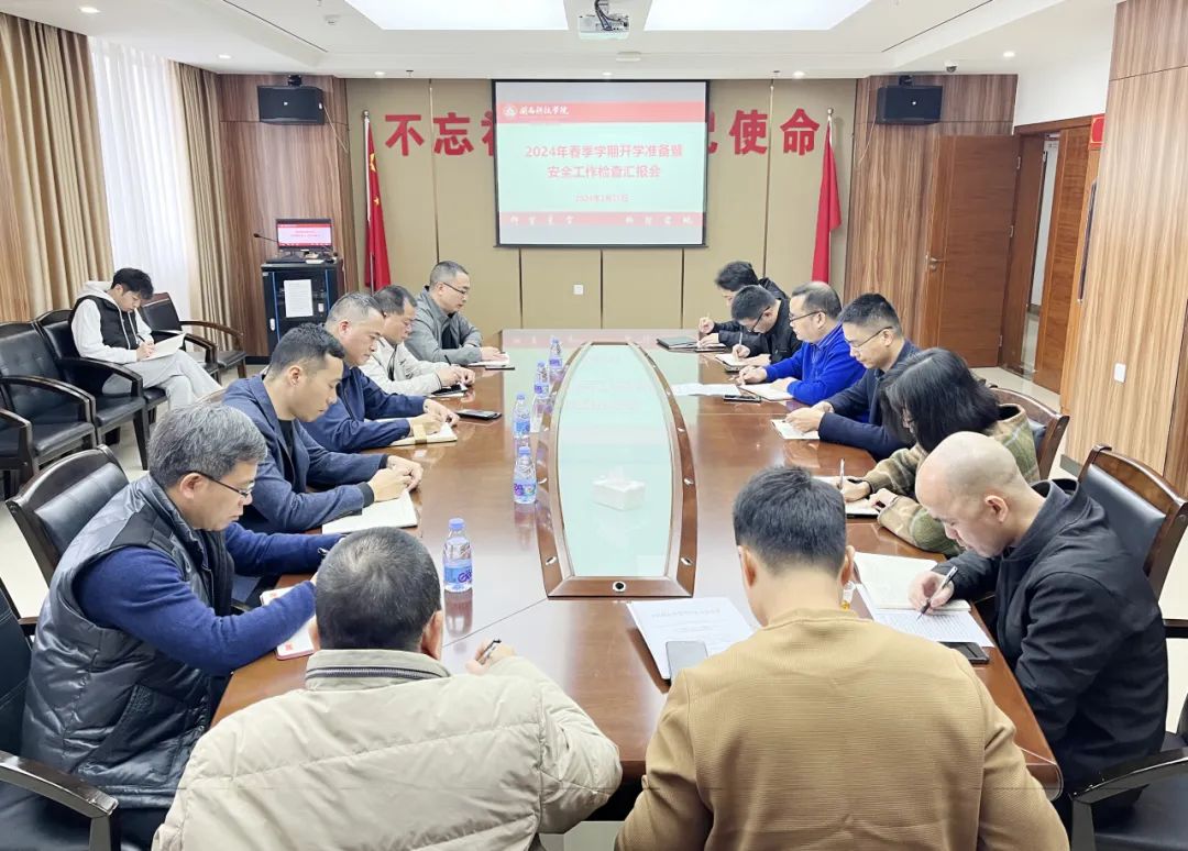 2月25日,我校召开2024年春季学期开学准备暨安全工作检查汇报会。校领导周勇军、林树生,校长助理王育海、刘武强,相关职能部门负责人参加会议。会议由常务副校长周勇军主持。