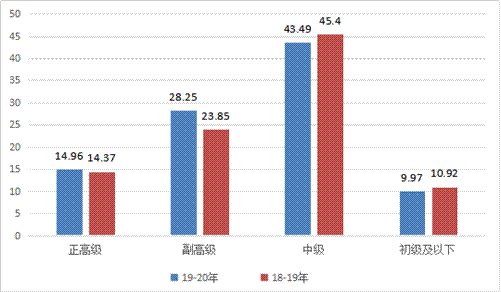 学生辅导员中,具有中级职称的22人,所占比例为52.38%。学生辅导员中,具有研究生学历的10人,所占比例为23.81%,具有大学本科学历的32人,所占比例为76.19%。